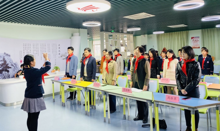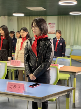 在星星火炬的指引下,在康夏雨老师的铿锵开场中,成立仪式拉开了序幕。少先队员代表们首先为出席活动的领导和嘉宾佩戴鲜艳的红领巾。