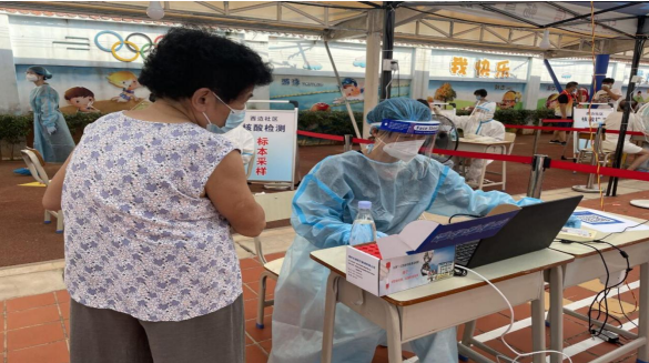 9月 15日早上七点未到,前埔北区小学教科室主任陈险峰老师带领张薇等老师到西边社区参加志愿服务,洪宝慧等老师到希望社区参加志愿服务。王茜老师家住海沧,洪宝慧老师家住翔安,都是路途遥远地赶过来进行志愿服务;许亚椿老师连续两天参加志愿服务;校医汤丽娜不仅要忙学校防疫工作,还要参加教育局组织的志愿服务。接到通知,她们都是义无反顾,爱心满满!参加志愿服务的老师虽然穿着严实的防护服,汗流浃背,但是她们工作认真负责,耐心地为检测者录入信息,协助完成当天的核酸检测工作。相信在我们的共同防疫抗疫下,一定能够彻底打败病毒!