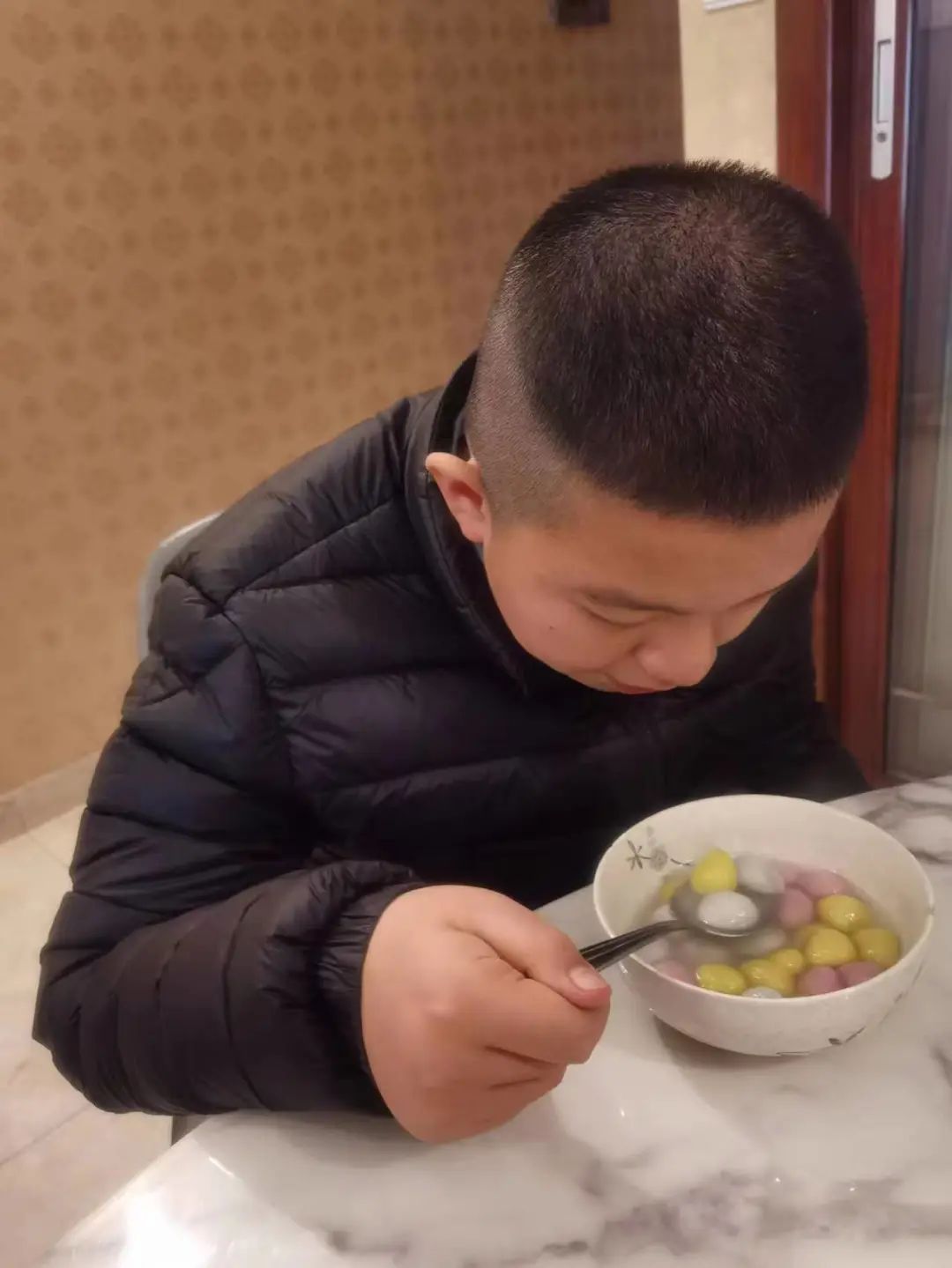 汤圆寓有团圆之意,象征全家人团团圆圆,和睦幸福。瞧!同学们吃着热腾腾的元宵,品尝着团圆的味道,多么幸福啊!