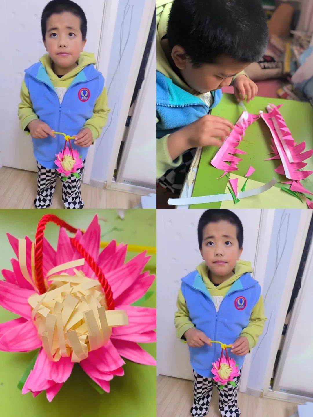 制作花灯不仅能够营造浓厚的节日氛围,还能够锻炼学生的动手能力。有的学生利用身边的红包袋、卡纸、粘土等材料,巧手构思,大胆创新,做出一盏盏精美的元宵花灯作品。
