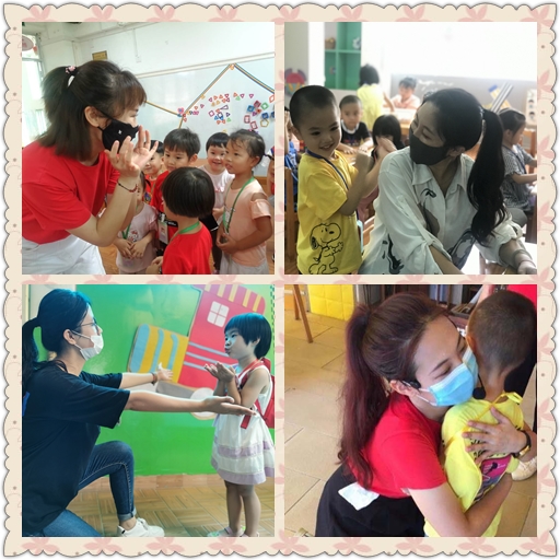 小班的宝贝们用他们自己的方式表达对老师们的爱。瞧!一个拥抱,一个飞吻,他们用灿烂的笑容和勇敢的表现为老师们送上最真、最美的祝福。
