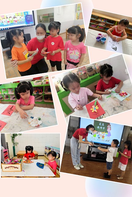 中班的小朋友们再次见到了日夜思念的老师,心中满是欢喜。他们亲手描绘老师的模样,用美丽的花和贺卡将老师的节日点亮,