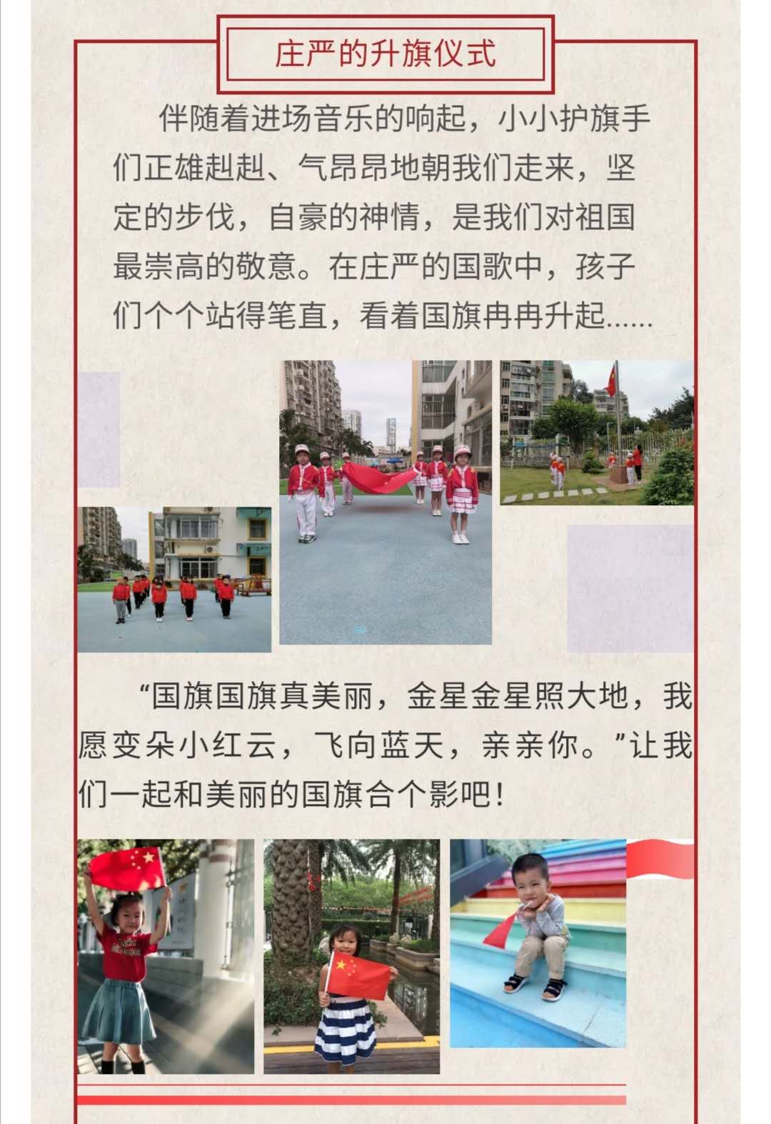 万里山河披锦绣,七彩童心寄深情!2020年10月1日,我们的祖国妈妈迎来了71周岁生日。为了激发幼儿热爱祖国的情感,增强幼儿作为中国人的自豪感,厦门市第四幼儿园开展了“小小中国心 浓浓爱国情”爱国月教育活动。
