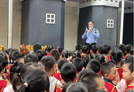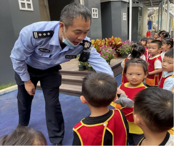 为增强广大教师和幼儿的安全意识,普及安全教育知识,10月25日,鹭江派出所的警官来到厦门市第五幼儿园,在高高飘扬的五星红旗下给孩子们带来了一堂别开生面的安全知识宣传课。