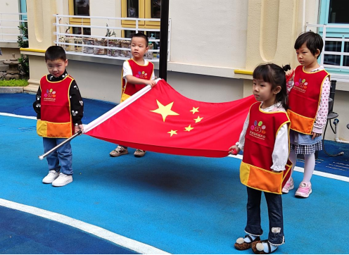 首先由五幼的小萌娃们进行庄严又富有童趣的升旗仪式