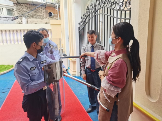 随后,民警还向老师们宣讲幼儿园安全保护的重要性,以及如何正确使用器械。宣讲中五幼的老师们不仅认真听取,还一同“上阵”,学习了器械基础的使用方法和安全知识,并进行了一场幼儿园内的模拟演练。这次宣讲不仅提高了老师们保护幼儿和自身的意识、增强了老师应对安全事故的处理能力,也为孩子们的内心埋下安全教育的种子。