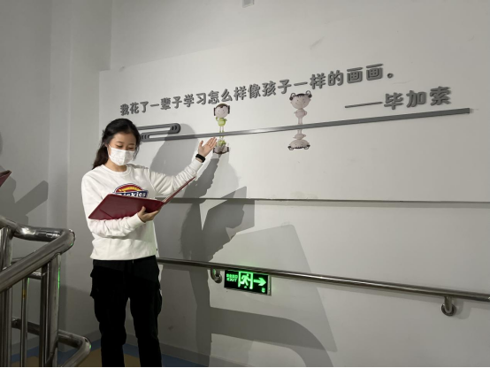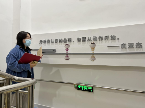 对于年轻老师来说,步入工作岗位也有两个月的时间了,对自己的校园文化认可和深刻领悟是件非常重要的事情,在周一例会时,白兴娣园长提出让年轻教师解读经验丰富的教师在建园初期设置在幼儿园各处的名言名句。楼道里、花丛中、水池旁随处可见的教育名言,像是老教师们埋藏的教育种子,等待着年轻教师的发掘。