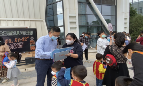 16日上午,孩子们穿着鲜艳的园服,按照约定时间到达集合地点了。看到小伙伴,大家都特别高兴。互相打着招呼,向爸爸妈妈介绍自己的好朋友。小班的弟弟妹妹带着最喜欢的玩具和同伴一起分享,中大班的哥哥姐姐举着班牌,站在队伍的前端,站得特别笔直。老师向家长们分发接种所需材料,并再次核对检查,确保接种活动高效顺利。