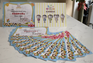 周末两天,老师们开启了紧锣密鼓的准备工作:向家长发起“种苗之约”,核对接种幼儿人数,发布接种注意事项,准备疫苗接种课程内容,联系广告公司制作统一的班牌、园牌,根据接种幼儿人数订购相应数量的点心……还设计了一份特别的奖状——“疫苗接种小勇士”。周二的疫苗接种活动,成为大家期待的一次快乐之旅。