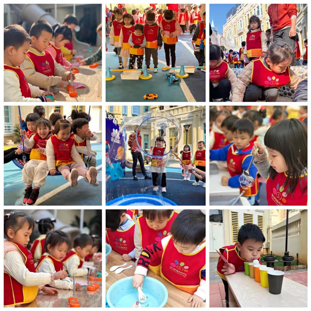 游园活动开始了,大家拿着游园卡,兴高采烈的到各个场所游戏、打卡。“火线冲击”“神笔浮画”“七彩泡泡”“渔乐无穷”“沙中寻宝”“急速赛车”“水上漂移”“空气大炮”……种类繁多、趣味纷呈的科学小游戏,让孩子们玩得流连忘返、不亦乐乎!