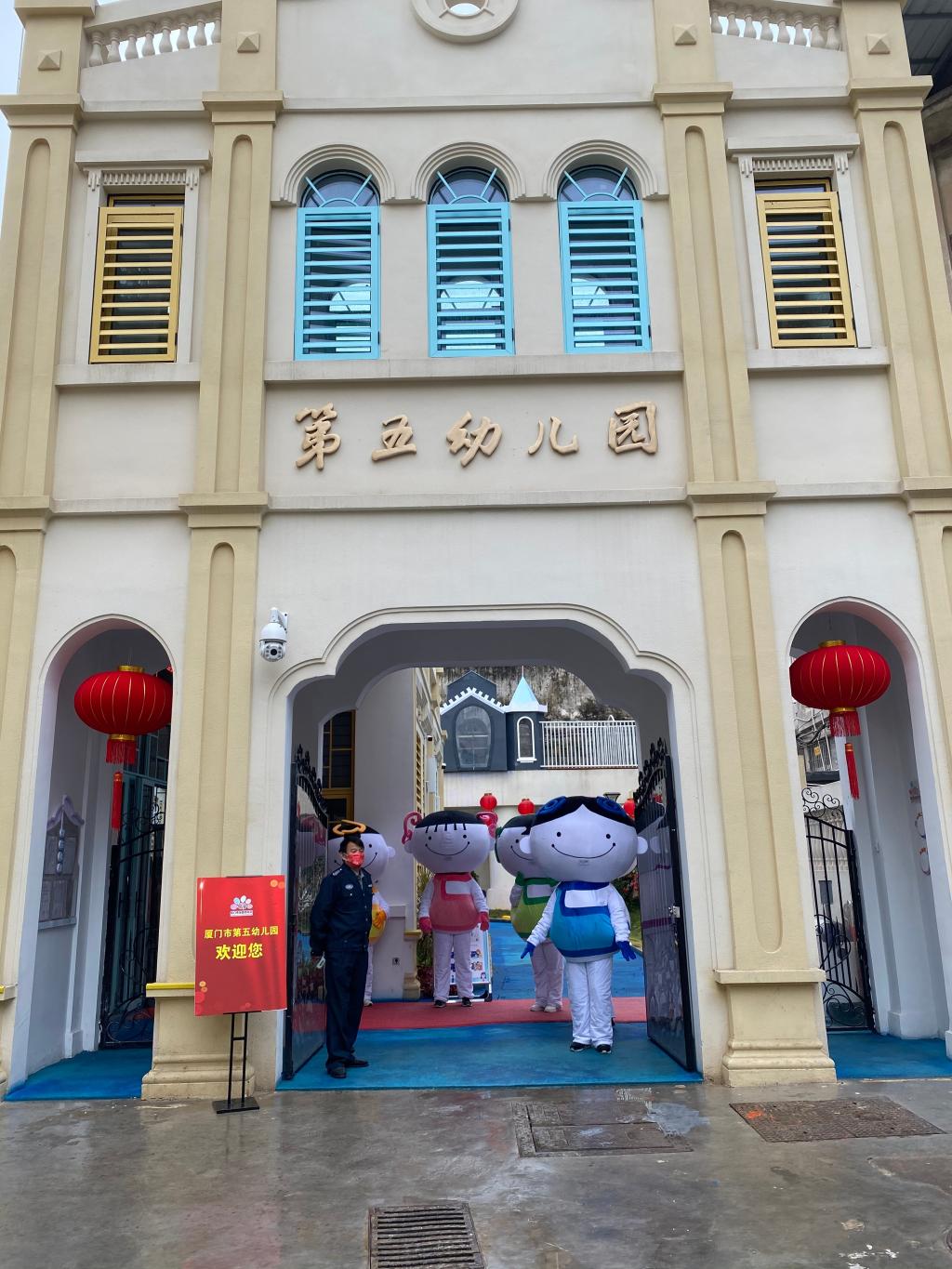 热情可爱的五幼吉祥物,早已在大门处迎接园长们的到来。