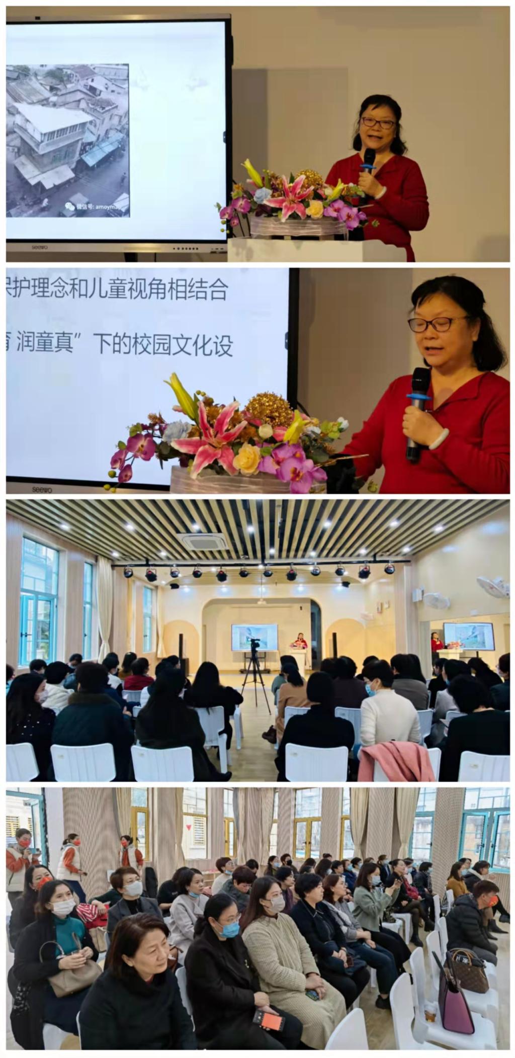 随后,白兴娣园长以《品读骑楼文化,走进老城新事》为题,和园长们分享了“五幼”的故事。从和“骑楼”的“恋爱史”,到历经5稿修改的“设计图”,再到基建中一路走来的点点滴滴……“老城”“新园”,五幼的开办离不开众多领导的关心和支持,离不开建设者的坚持和努力。离不开五幼幼教人那颗如磐的初心,奋楫笃行,扬帆筑梦,明日的五幼,将会有更多的故事。
