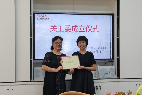 随后,李子朔副主任宣布了厦门市第五幼儿园关工委正式成立!同时宣布成员名单,白园长为成员们颁发了聘书。