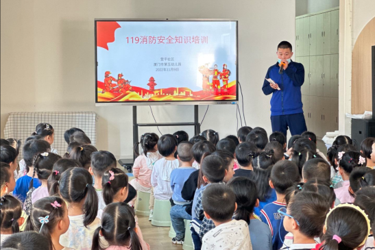为了增强师幼消防安全意识,提高火灾的预防和自救能力,有效减少火灾伤害事故。2022年11月9日厦门市第五幼儿园开展了“消防应急疏散"演练活动。
