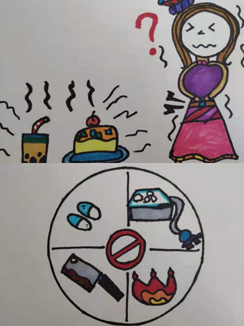 首先,老师在班级群通过视频、图示等方式向家长宣传防疫、防诈骗等居家安全知识,提高家长们的安全意识。从儿童的视角,教师们鼓励幼儿自己设计关于居家安全的宣传画,鼓励幼儿线上分享,丰富了幼儿防火、防电、防拐等安全知识,提高幼儿自我保护意识。