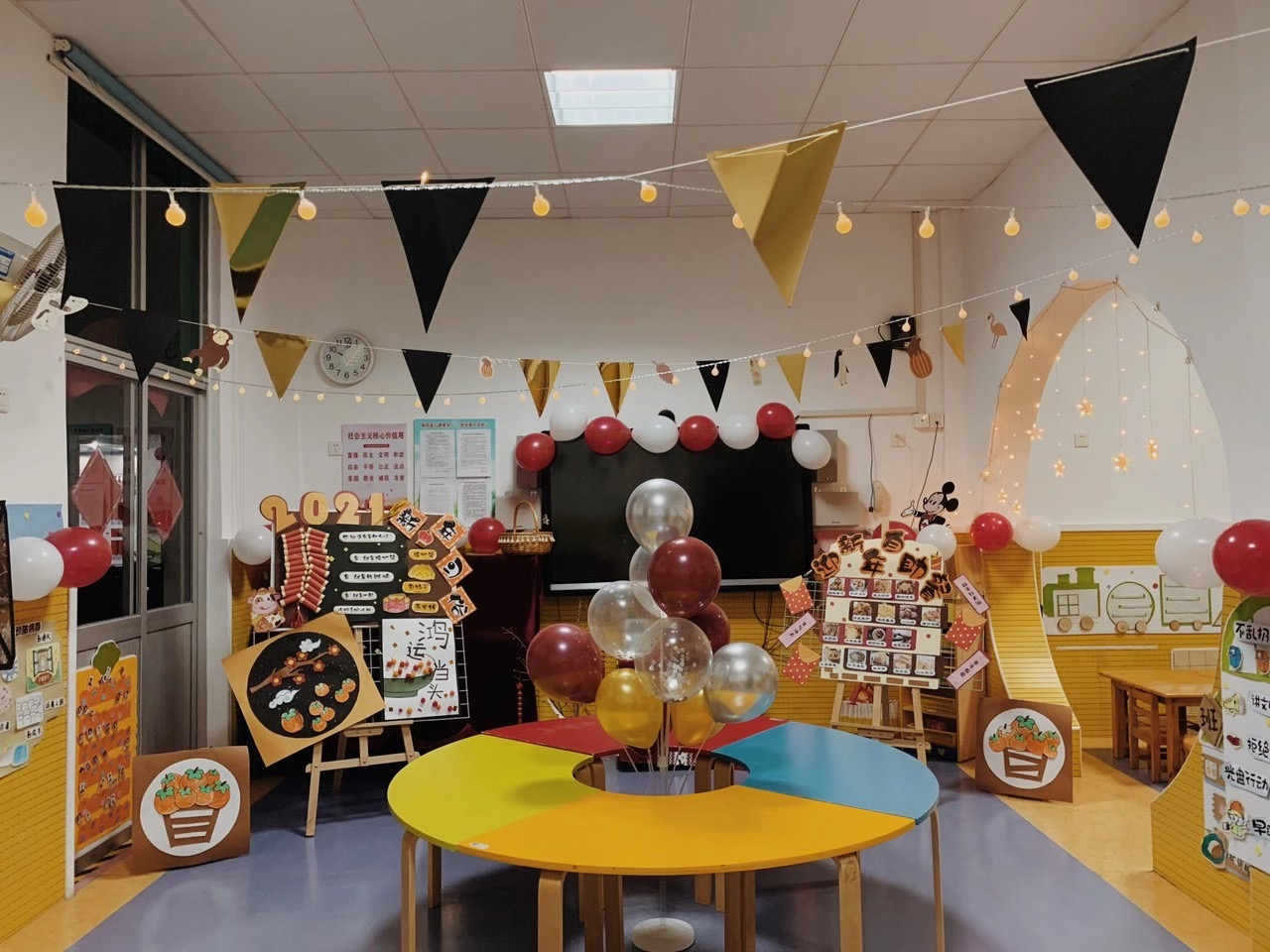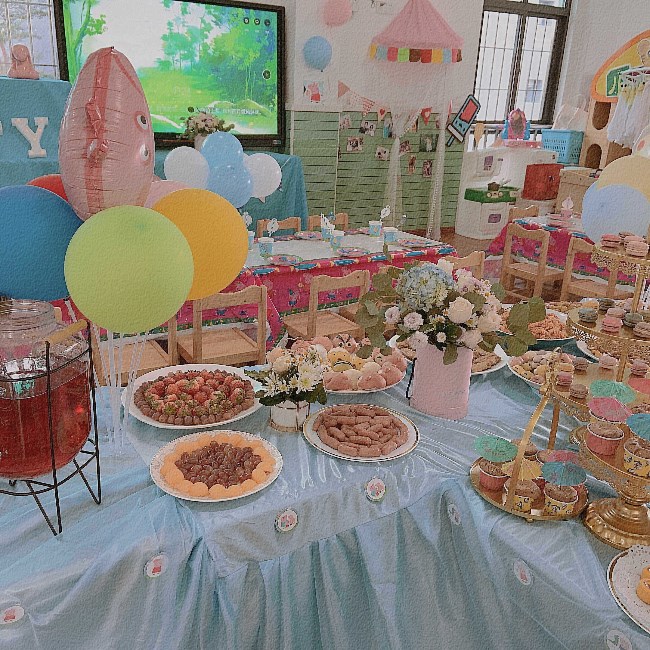 为了给宝贝们一个节日的仪式感,让孩子们在温馨美好的环境中快乐用餐,感受节日氛围,老师和孩子们一起讨论、布置了各有特色的用餐环境。