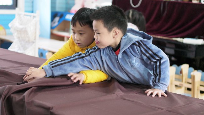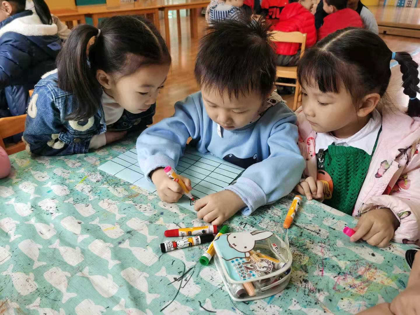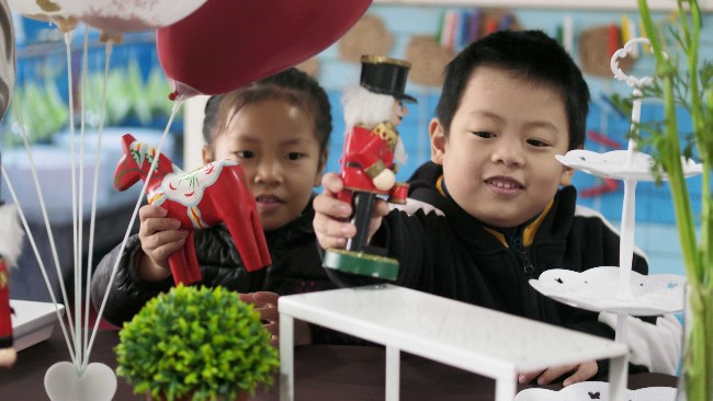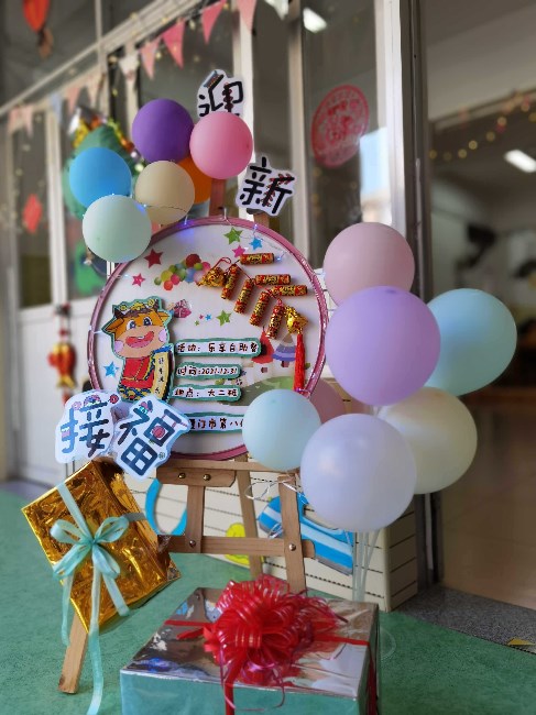 宝贝们一起动手动脑,参与到环境的布置中,感受节日温馨快乐的氛围。