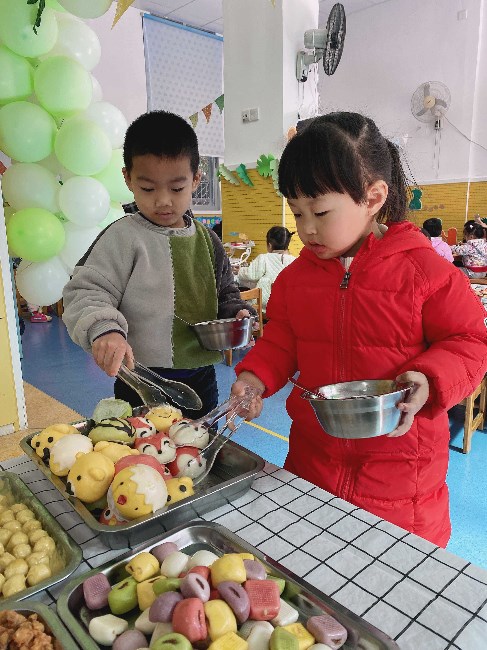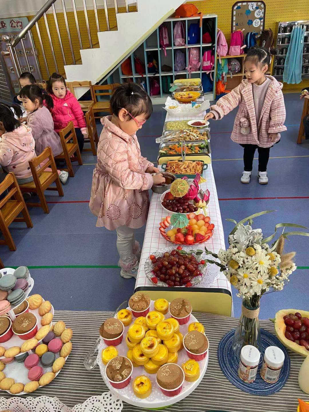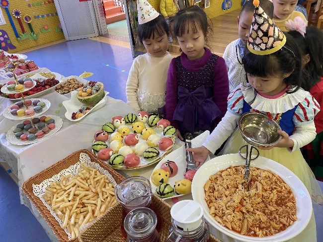 盛大丰富的自助餐活动的幕后,是孩子、老师、后勤工作人员共同配合的结果。在前期,园长和老师们共同讨论,选取出丰富的餐点“菜单”,既符合孩子们的营养需求,又新颖美味,第一时间抓住孩子们的心。