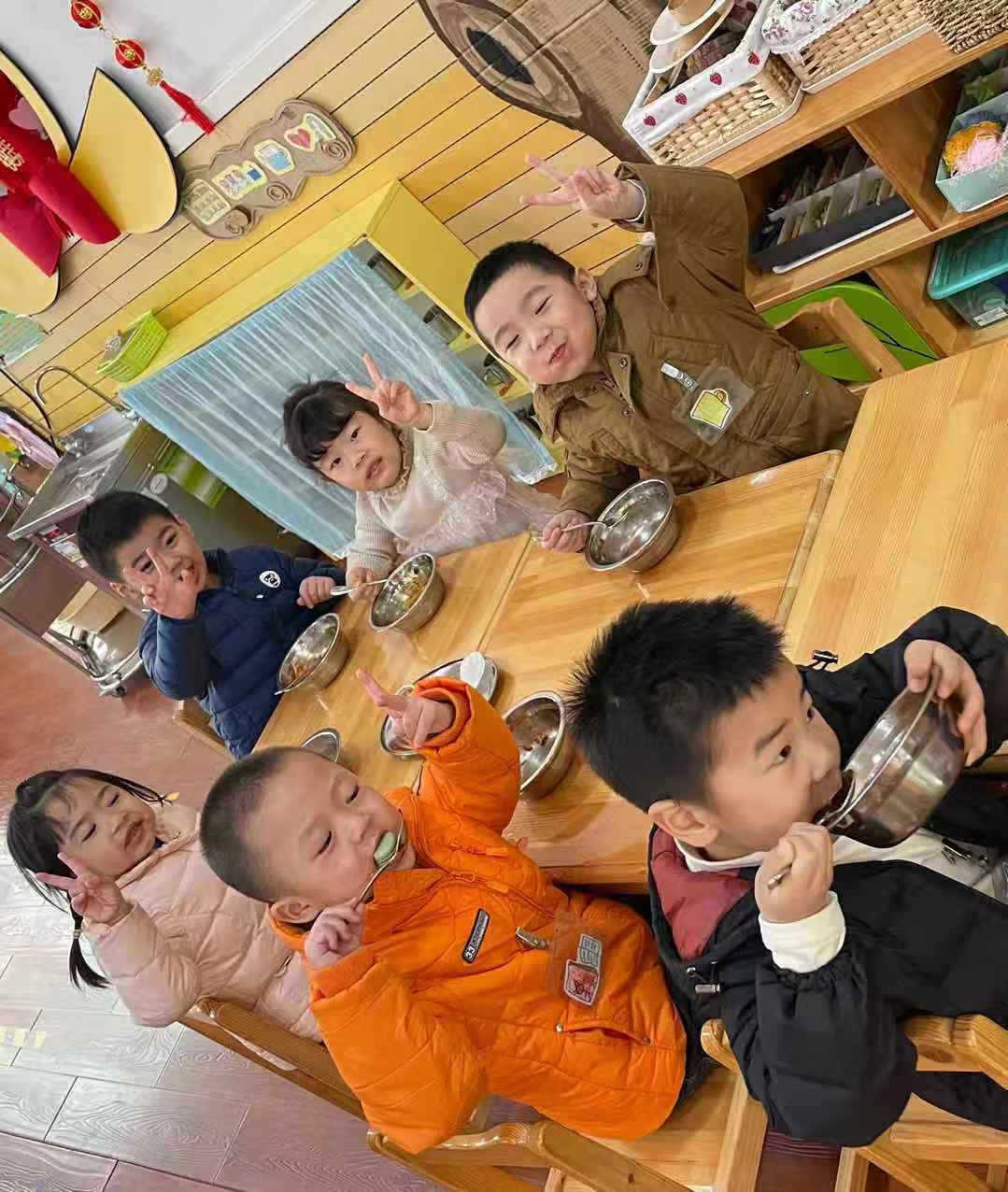 在温馨幸福、快乐和谐的氛围中,八幼娃们自主选择、自我服务,甜甜的笑容洋溢在每一位宝贝的小脸上。