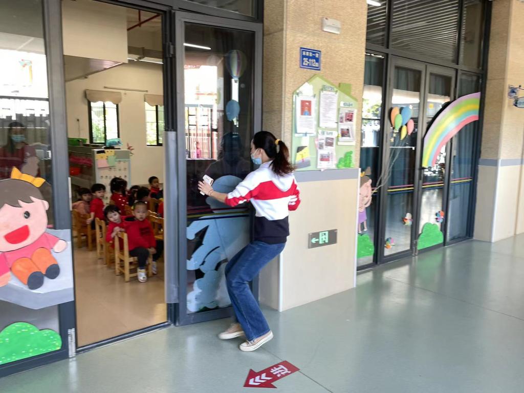 八幼安全工作领导小组成员在郑小红园长领导下,立即反应,迅速分头行动。一是马上关闭通往二楼以上的各个楼梯通道,并马上通知各班做好防护抵御措施。二是快速前往一楼所在的班级,将所有门窗紧闭,窗帘拉上,将桌椅推至门边,迅速引导所有幼儿躲藏在教室角落,做好幼儿心理疏导。