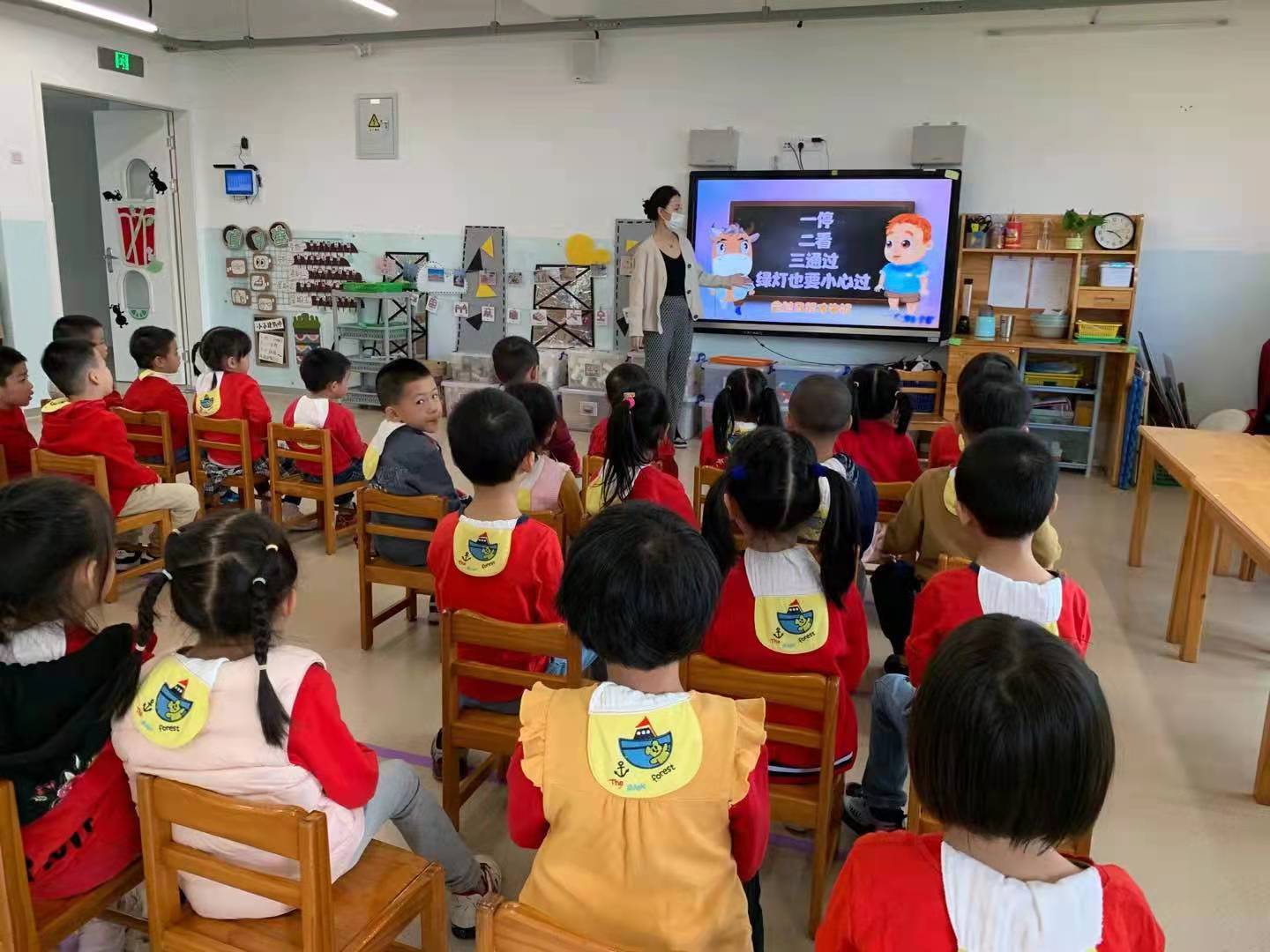 每日“安全五分钟”教育活动,小朋友了解红绿灯的作用,认识交通标志,知道不在马路上奔跑打闹,要做一名懂文明、讲安全的交通小小宣传员!