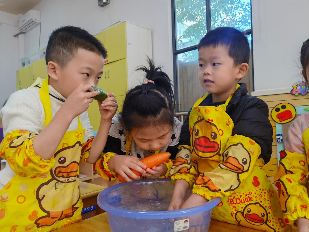 种植区里面满是幼儿亲手种植的蒜头、大葱、萝卜、芹菜……在这一方小小的天地里,孩子们学会了如何正确地去爱护和养护动植物。你浇水松土,我施肥除草,细心呵护,仔细观察,我们一起见证生命的成长。可爱的小番茄、香香的百香果、红红的辣椒、绿绿的青菜······采摘、清洗、烹饪、品尝,幼儿收获满满!