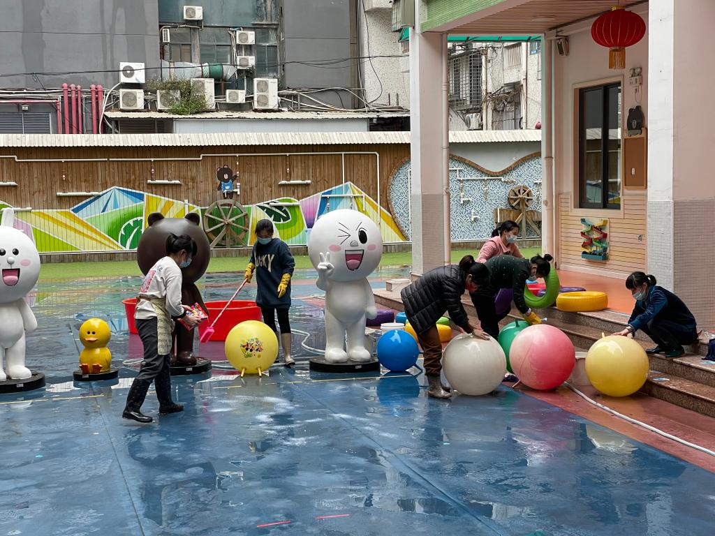安全、整洁的环境是幼儿开展活动的重要保障。八幼全园教职工对幼儿园室内外进行全面、细致的清洁消毒工作,包括公共区域、楼道、扶梯把手、户外大型玩具、卫生间、教室、厨房、多功能室等多处场所,严格筑牢幼儿园疫情防控的卫生防线。