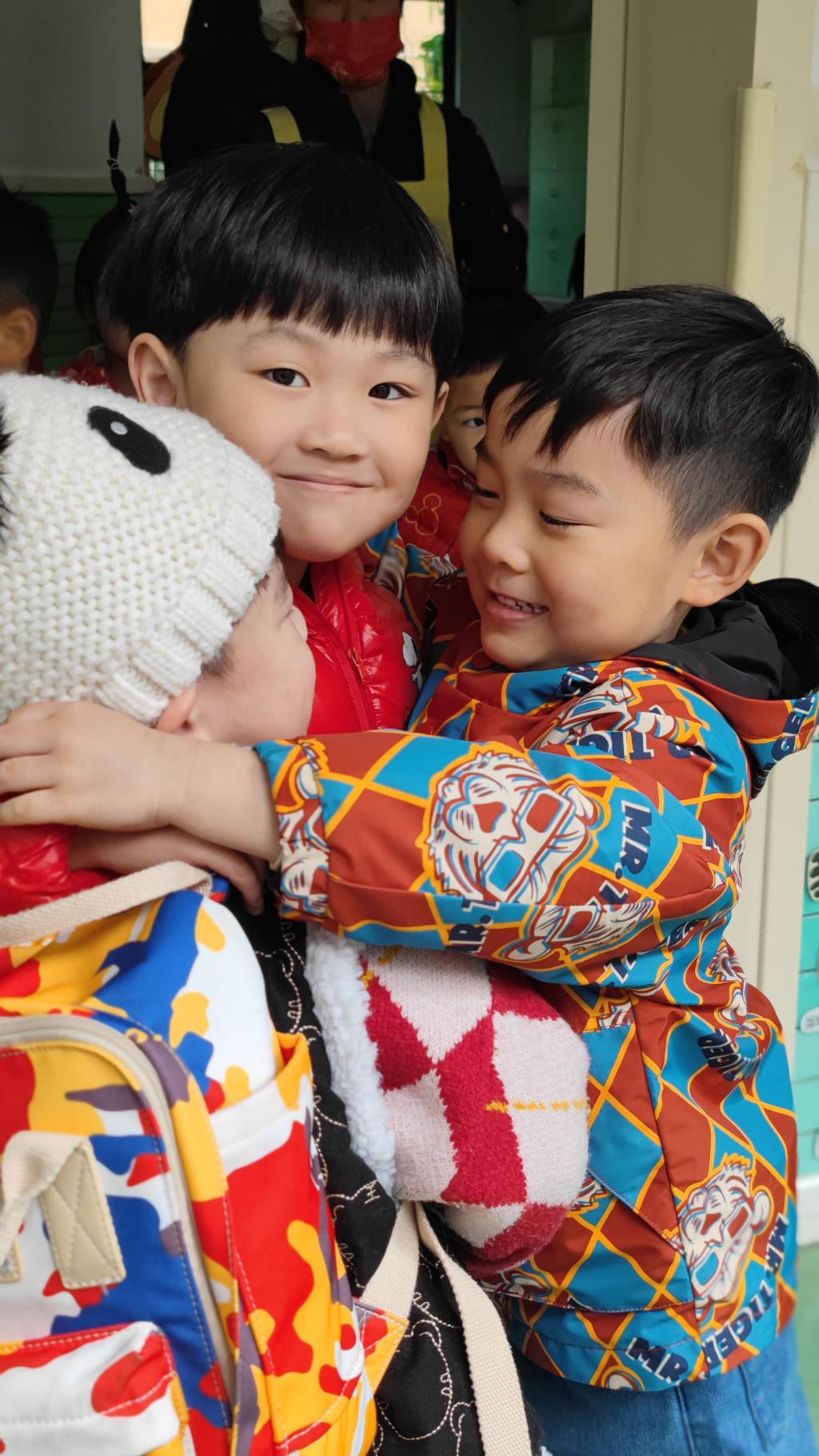 见到小伙伴,忍不住拥抱在一起,开心极了!