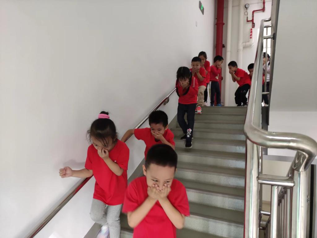 演练开始啦!伴随着急促的消防警报声,老师们按照各班的消防逃生路线,引导萌娃们弯腰、捂住口鼻,快速有序,快速有序地疏散到安全地带。到达安全位置后,班级老师及时清点幼儿人数,并安抚幼儿,舒缓幼儿的紧张情绪,对幼儿的演练进行总结。