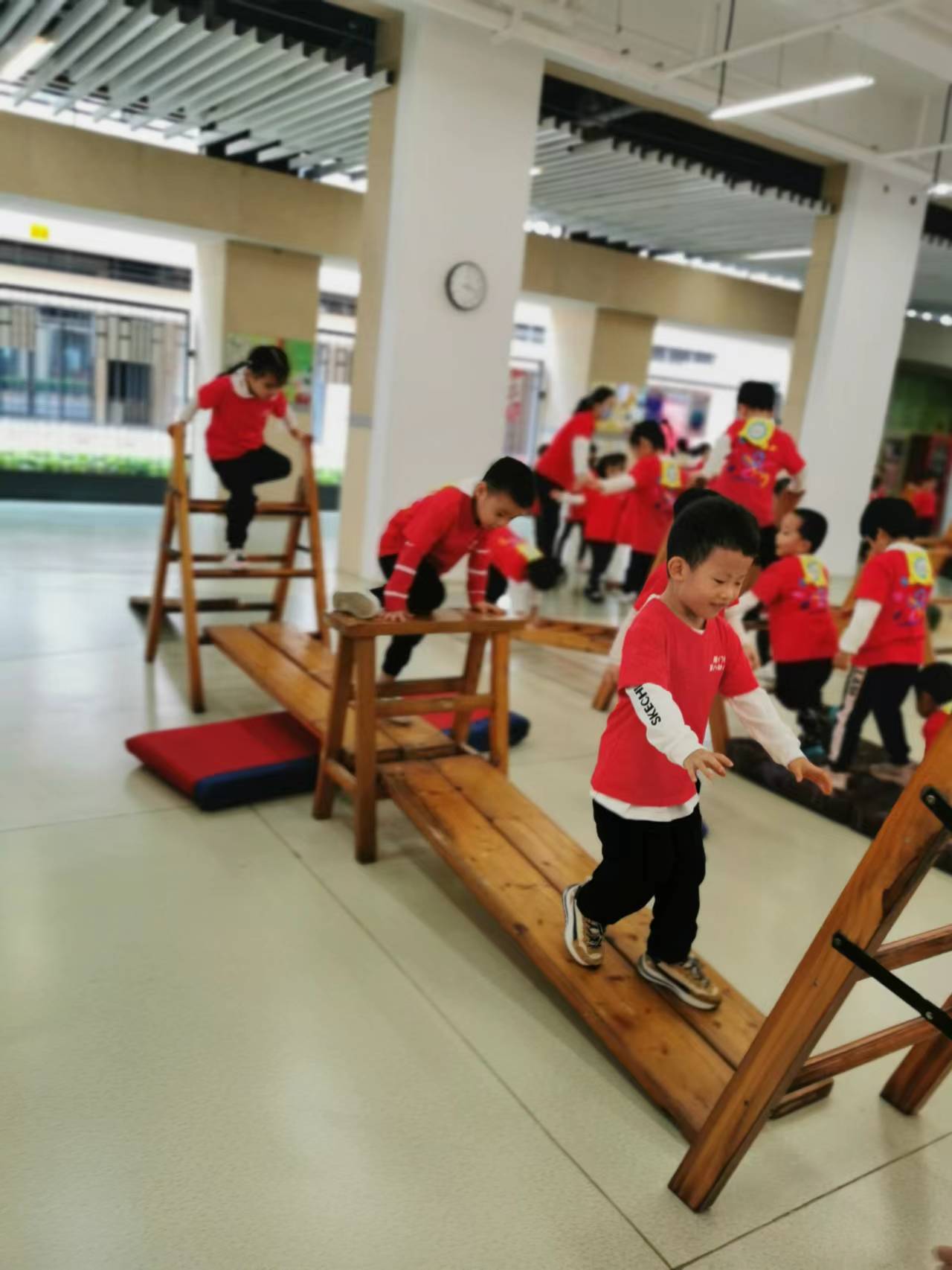 8:30一到,丰富有趣的体育游戏开始了。欢声笑语充斥着幼儿园的每个角落,孩子们以饱满的精神面貌开启了元气满满的一天!孩子们大胆地挑战走平衡木,身体的平衡得到锻炼;趣味“闯关”游戏,通过一系列关卡,发展孩子的跳、爬、钻、翻滚等运动能力。