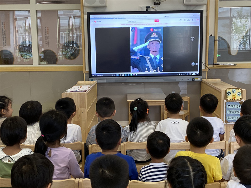 立足幼儿兴趣点的主题活动激起了萌娃们浓浓的爱国热情,他们纷纷当起了小小调查员、小小护旗手、小小解说员、小小环创师,通过观看阅兵视频、请教爸爸妈妈、采访老师、翻阅图书、上网找资料等方式,感受到祖国的伟大富强、繁荣昌盛。