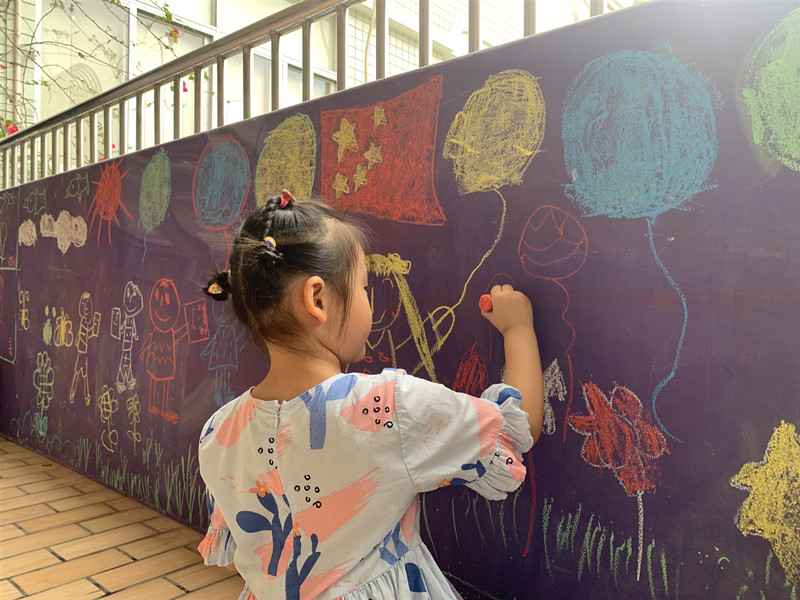 随着主题的不断深入,爱国情怀也愈发浓厚,九幼萌娃们用自己独特的方式向祖国妈妈花样告白。画画伟大的祖国、建起壮观的天安门城楼、做个甜甜的蛋、拉起美丽的彩链,小小的手制造大大的惊喜,萌娃们为祖国妈妈准备了各种各样的礼物。红歌唱起来、舞蹈跳起来、祝福的话儿说出来,稚嫩的童音传递着他们对祖国妈妈深深的爱与祝福。