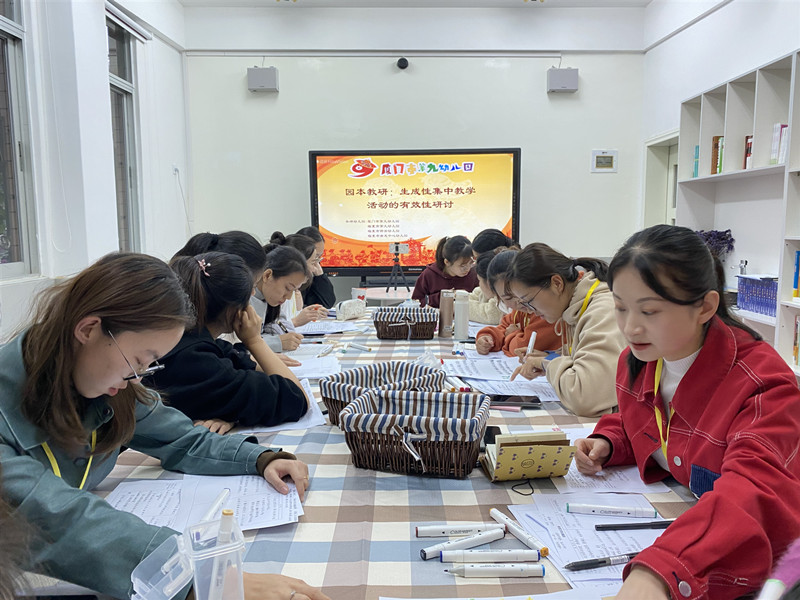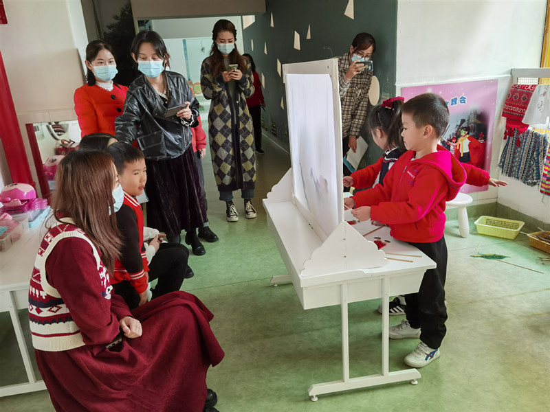 我园还特意为跟岗教师们创设开放、互补、共同发展的教研环境,教师们在交流中学习和反思,在碰撞中实现创造和提升。赵菁园长还结合我园的办园实际,为跟岗教师分享了经验与做法,充分展现了“以理念引领园本文化,以课题彰显园本特色”的九幼发展之路。