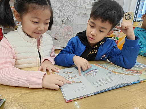 此次阅读月活动形式丰富多样:小班幼儿聚焦阅读兴趣培养,开展亲子阅读、师幼共读、好书推荐等不同形式的阅读活动,从绘本中衍生出了充满童趣与探究性的绘本游戏;中班幼儿聚焦爱护图书教育,幼儿自己规划图书馆、自己动手布置、制定规则、管理图书,在参与幼儿园图书区管理中丰富经验;大班幼儿聚焦图书作用的体验,各班针对STREAM主题探究项目中的问题,寻找绘本、画册、说明书等的帮助。有的班级通过阅读解开了“海底隧道是怎么建成”的困惑,有的班级通过阅读解决了“搭建中国虹桥、闽南建筑”“制作提线偶、泥塑”等工程技术问题,幼儿在深度探究中充分感受阅读带来的喜悦与成功。