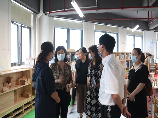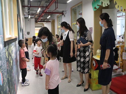 2022年6月14日上午,厦门市人社局事业处钱飞鸣处长、厦门市教育局人事处刘伟玲处长、郭淑婷副处长等领导在思明区教育局二科谢克璇老师的陪同下莅临厦门市第九幼儿园调研指导。
