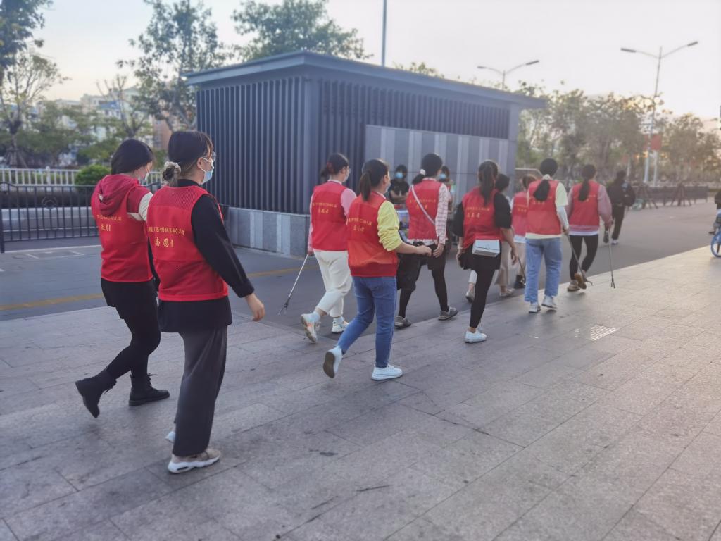 快乐健步走,文明齐动手。青年教师们身着红马甲,点燃火焰般的热情,以饱满的热情,传递健康生活新方式。