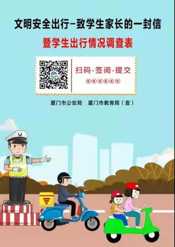 幼儿园请家长认真填写《文明安全出行——致家长一封信暨学生出行情况调查表》,真实准确的了解孩子上下学的方式、以及幼儿接送车的安全现状,一盔一带,不超员超载,严禁无牌无证的车辆接送幼儿,确保幼儿接送途中安全。