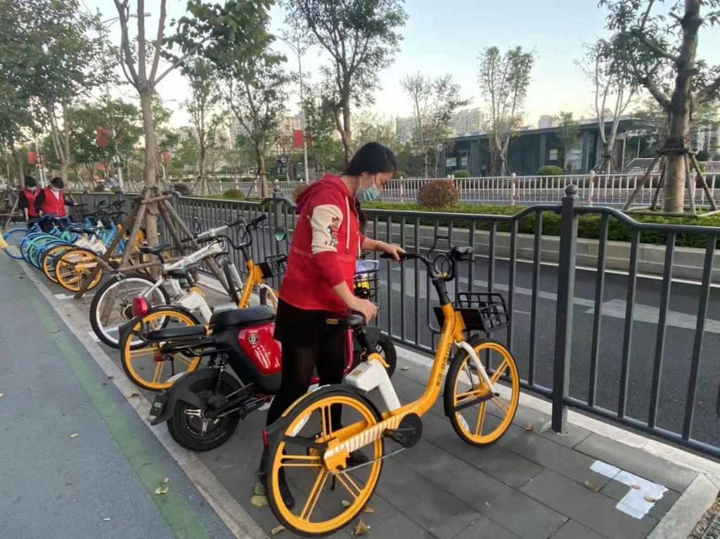 教师志愿者利用放学时间,在校园周边进行交通督导志愿者活动。