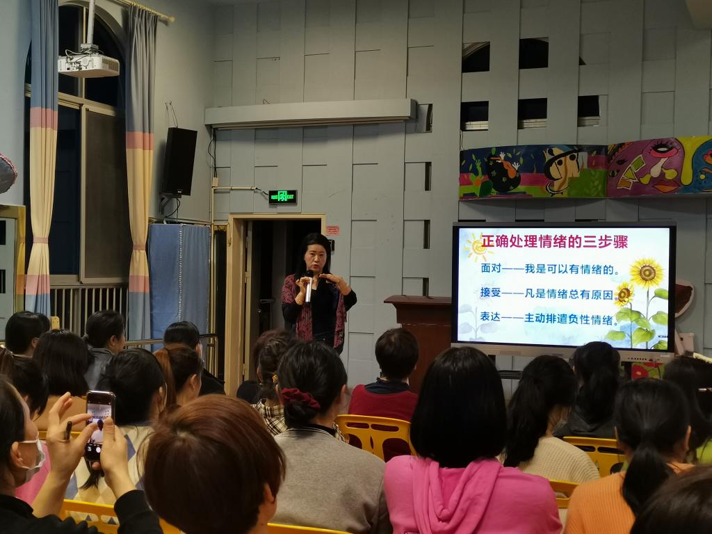 在讲座的最开始,王萍老师用一首热情向上的音乐《天天向上》,让教职工们通过旋律和歌词,以及王老师柔和却充满力量的语言,感悟到了从事教育工作,应当认识压力,释放压力,缓解情绪,不慌不忙,因为来日方长。