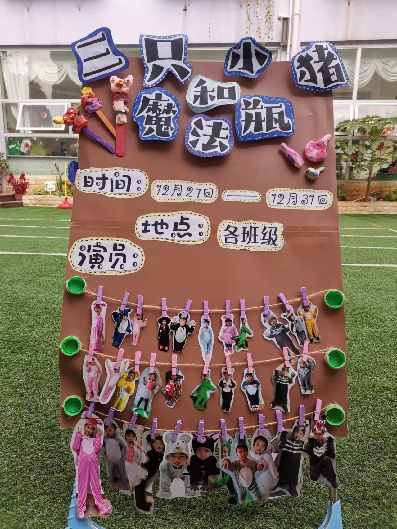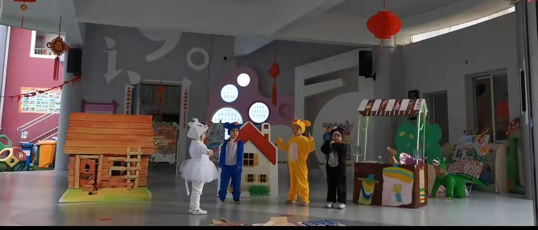 中三班童话剧《三只小猪和魔法瓶》:三只小猪口渴了,就去店里买水喝,它们运气真奇妙,想要喝水没喝着,这是为什么?