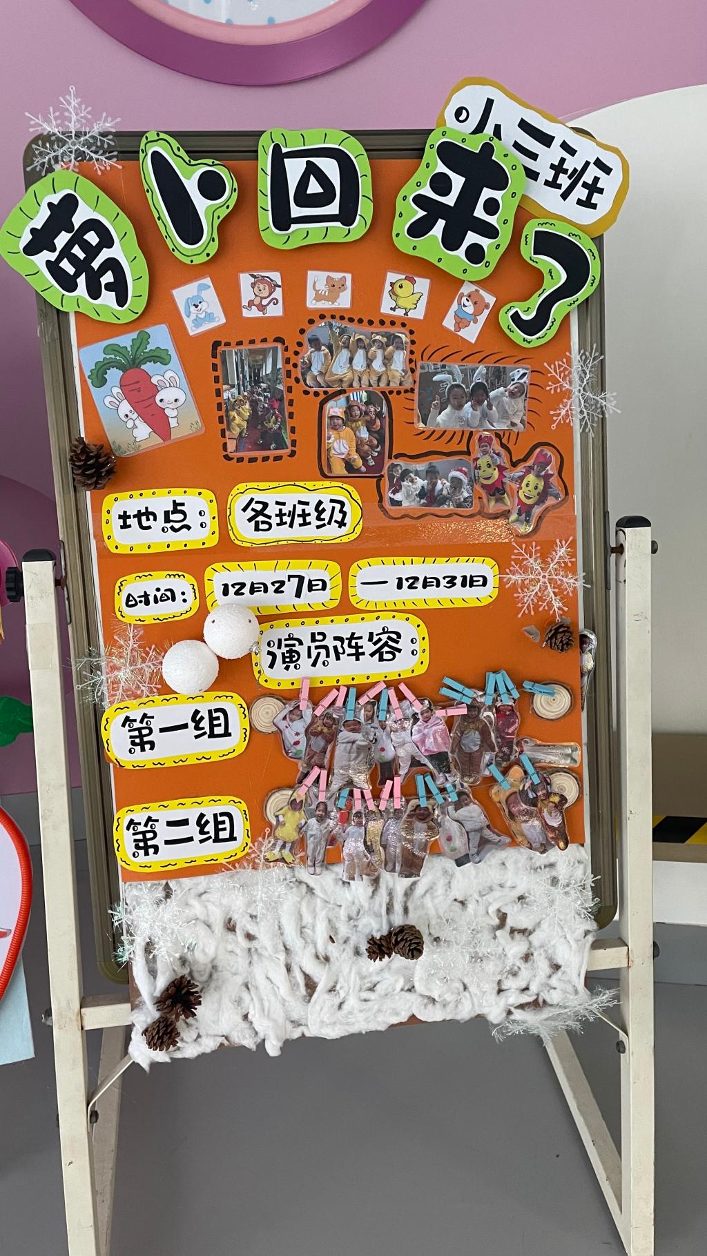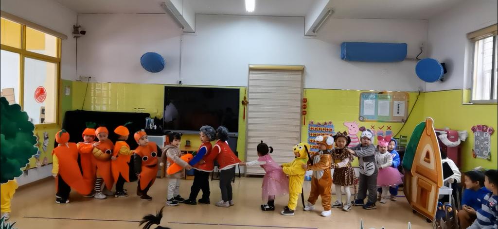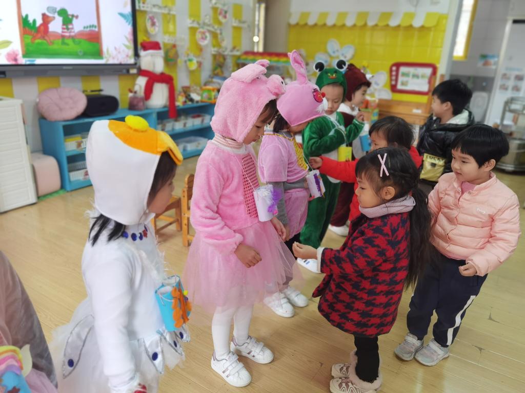 小三班童话剧《萝卜回来了》:寒冷的冬天,小动物们在雪地里找到食物,一个一个送给好朋友,奇怪的是小白兔送出去的萝卜又被送回来了,这是怎么一回事呢?