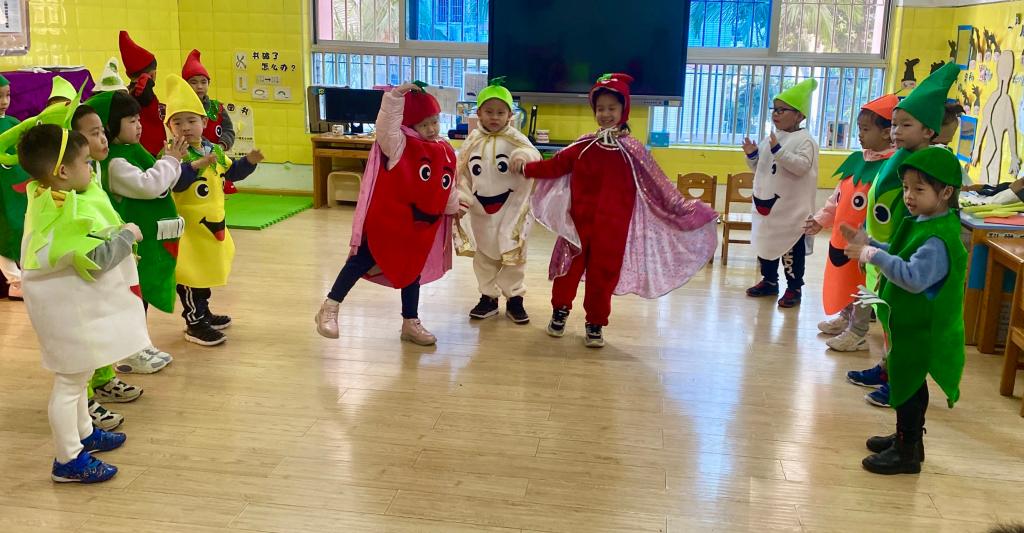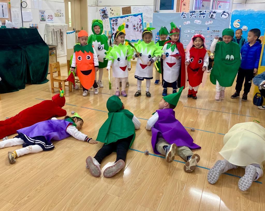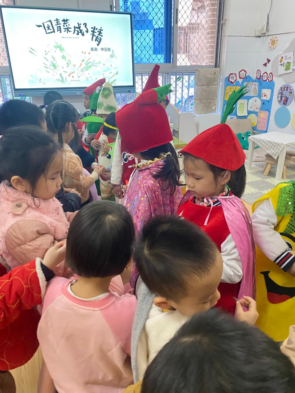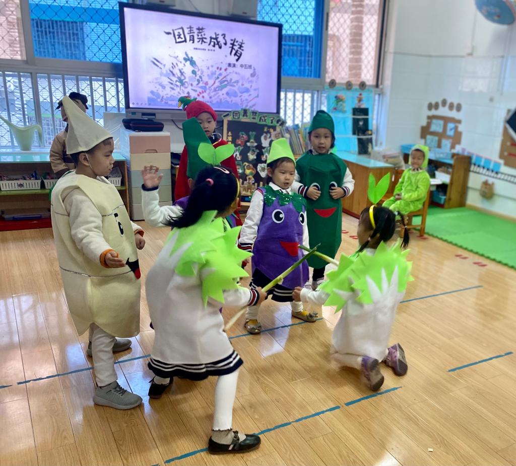 中五班童话剧《一园青菜成了精》:出了城门往正东,一园青菜绿葱葱。最近几天没人问,他们个个成了精。