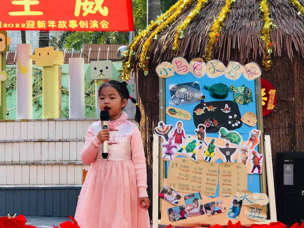 表演开始之前,园长妈妈首先致辞。园长妈妈说,今天的故事创演舞台属于每一个小朋友,希望大家享受表演,自信发挥,相信宝贝们能展现自己最棒的一面、每一个人都有出色的表现。最后在这辞旧引新之际,园长妈妈恭祝大家新年快乐!