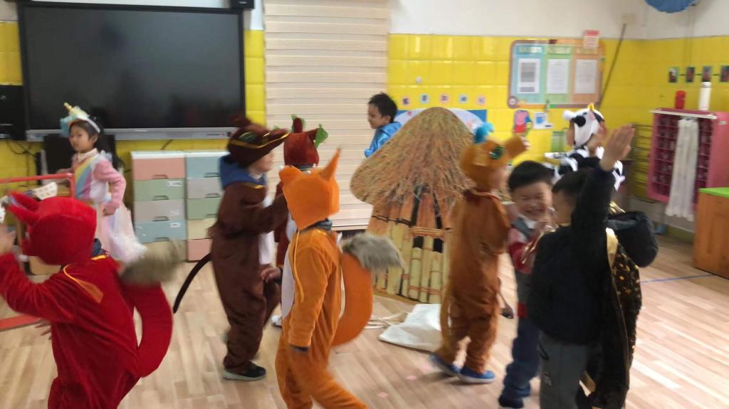 我们各个表演小组齐出动,把故事小舞台搬到了每个班级里,和各班伙伴们分享。演员们大胆展现,你说我讲,你唱我跳,走班演出让我们既兴奋又紧张,既渴望又满足。