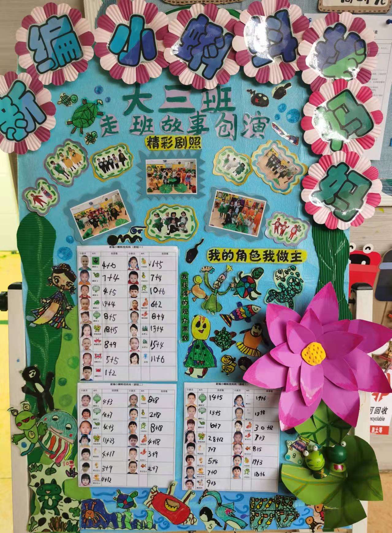 我们准备的故事呀,伙伴们都耳熟能详了。那我们就加上自己的创意,把故事变得焕然一新吧!瞧,我们演出彰显个性的神态与动作,我们动脑编写讲述对白、新编歌曲舞蹈、畅想情节变化,我们亲手制作表演道具和故事海报,我们相信这些精心准备一定可以让故事表演绽放光彩。