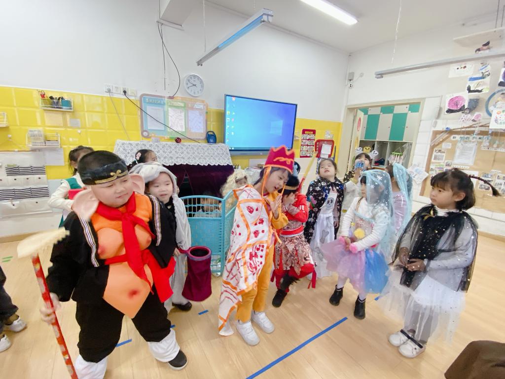 大二班童话剧《西游记之挑战白骨精》:白龙马儿蹄朝西,唐僧师徒去取经。这天来到变形山,变形山有白骨精。白骨精,心思坏,竟敢挑战孙悟空,到底谁的本领大?