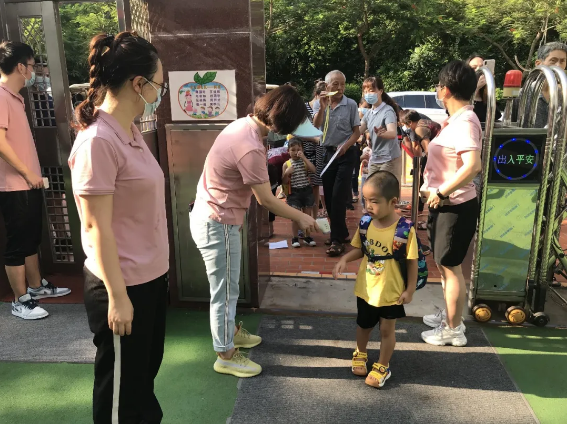 为了给孩子们营造健康、安全的学习氛围,老师们早早地站在幼儿园门口,查看健康码、为幼儿测量体温、洗手消毒,每个环节都有条不紊地进行着,确保每个小朋友都安全健康地入园。