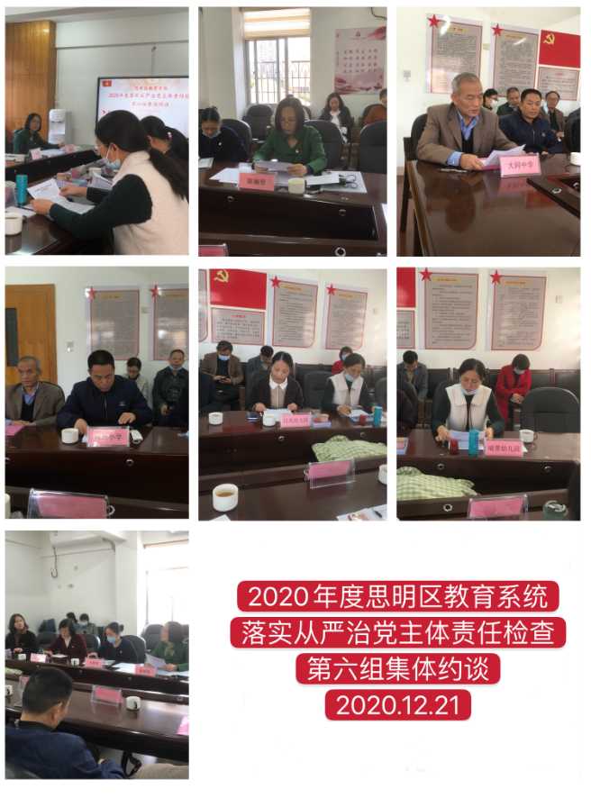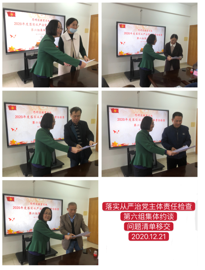 12月21日上午,思明区教育系统2020年度落实从严治党主体责任检查第六组在我园对被检查组进行集体约谈,各校、各园党支部主体责任人参加了会议。
