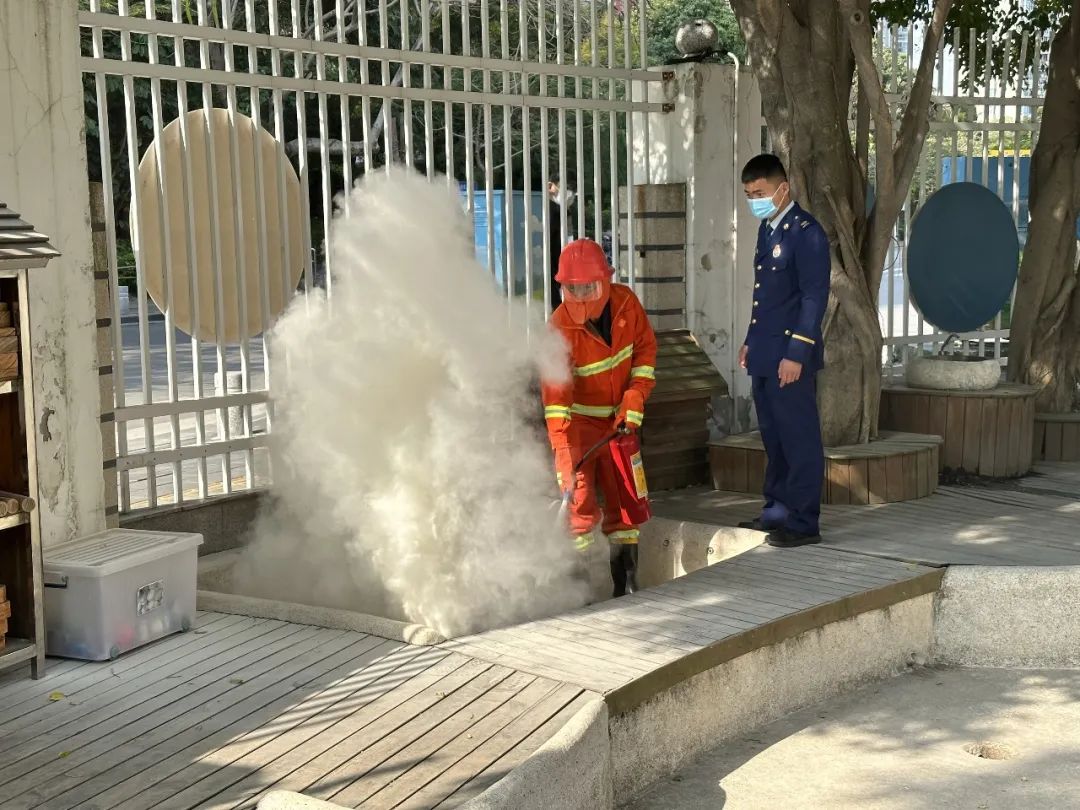 演练结束后,吴班长给日光教职工培训讲解了消防知识,详细介绍了灭火器的使用方法,并进行了实际操作,大家也非常认真的进行了实操学习。