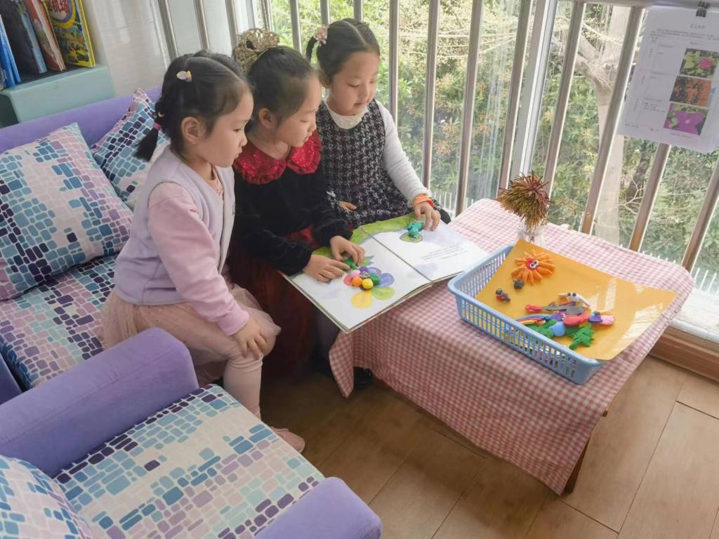 浓郁的书香氛围弥漫在整个校园中,春光正好,阅读不仅局限在班级里,幼儿园里处处有书。走廊的绘本角、大厅的阅读区、藏书丰富的图书馆……在书香环境的浸润下,小朋友们感受到了知识的美妙和生命的快乐。